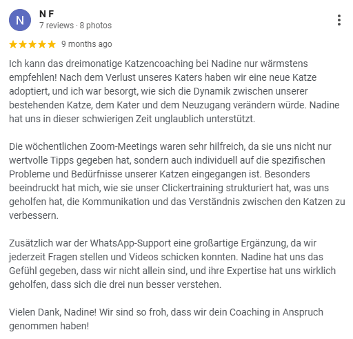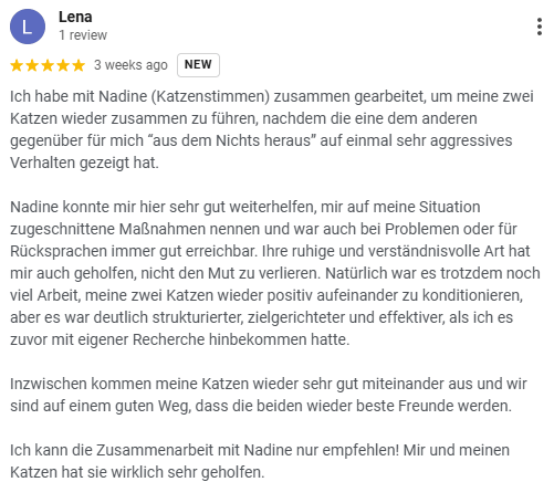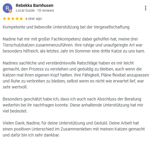 Hallo, ich bin Nadine, deine Katzenexpertin. Als ausgebildete Katzenverhaltensberaterin und Katzentrainerin helfe ich Katzenhaltern, wenn es im Zusammenleben mit ihren Katzen nicht ganz rund läuft.